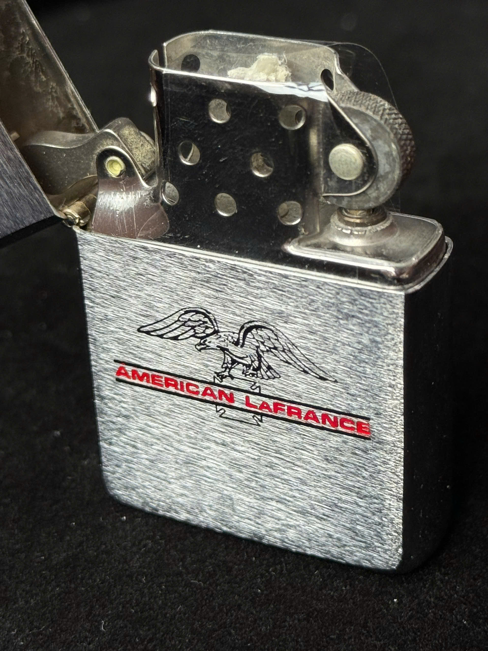 Chiếc Bật lửa zippo American LaFrance sản xuất năm 1976, mang thiết kế đơn giản nhưng mạnh mẽ với hình ảnh đại bàng đang tung cánh và dòng chữ “American LaFrance” – thương hiệu huyền thoại trong ngành sản xuất xe cứu hỏa và phương tiện khẩn cấp tại Mỹ. Bật lửa zippo American LaFrance Vỏ bật lửa làm từ đồng thau mạ chrome xước (brushed chrome), vừa bền bỉ vừa mang vẻ đẹp cổ điển.