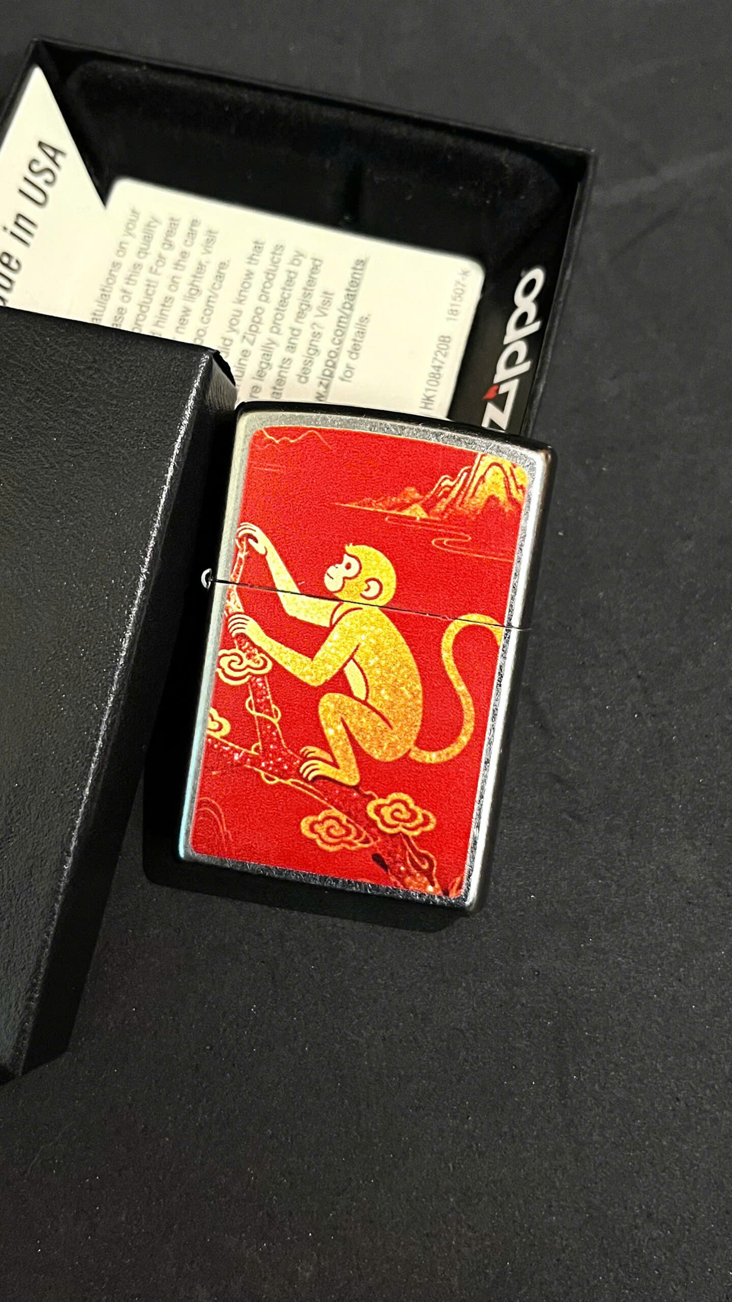 Chiếc Bật lửa zippo in chủ đề 12 con giáp mẫu con thân được chế tác tinh xảo với hình ảnh khỉ – linh vật của năm Thân – được khắc nổi bật trên nền kim loại bóng mờ. Hình tượng con khỉ thông minh, nhanh nhẹn và đầy tinh nghịch được thể hiện sống động qua từng đường nét, kết hợp hài hòa với hoa văn truyền thống phương Đông. Thiết kế không chỉ tôn vinh biểu tượng trí tuệ và linh hoạt của tuổi Thân mà còn mang lại cảm giác độc đáo, cá tính cho người sở hữu.