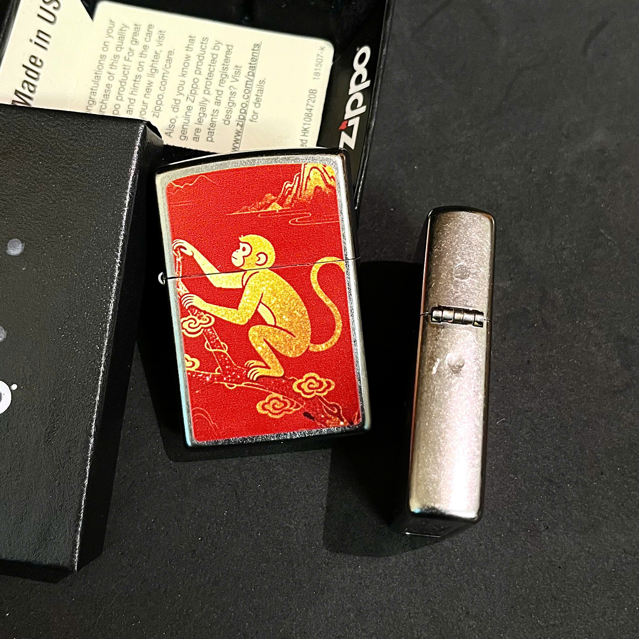 Bản lề chắc chắn của Bật lửa zippo in chủ đề 12 con giáp mẫu con thân
