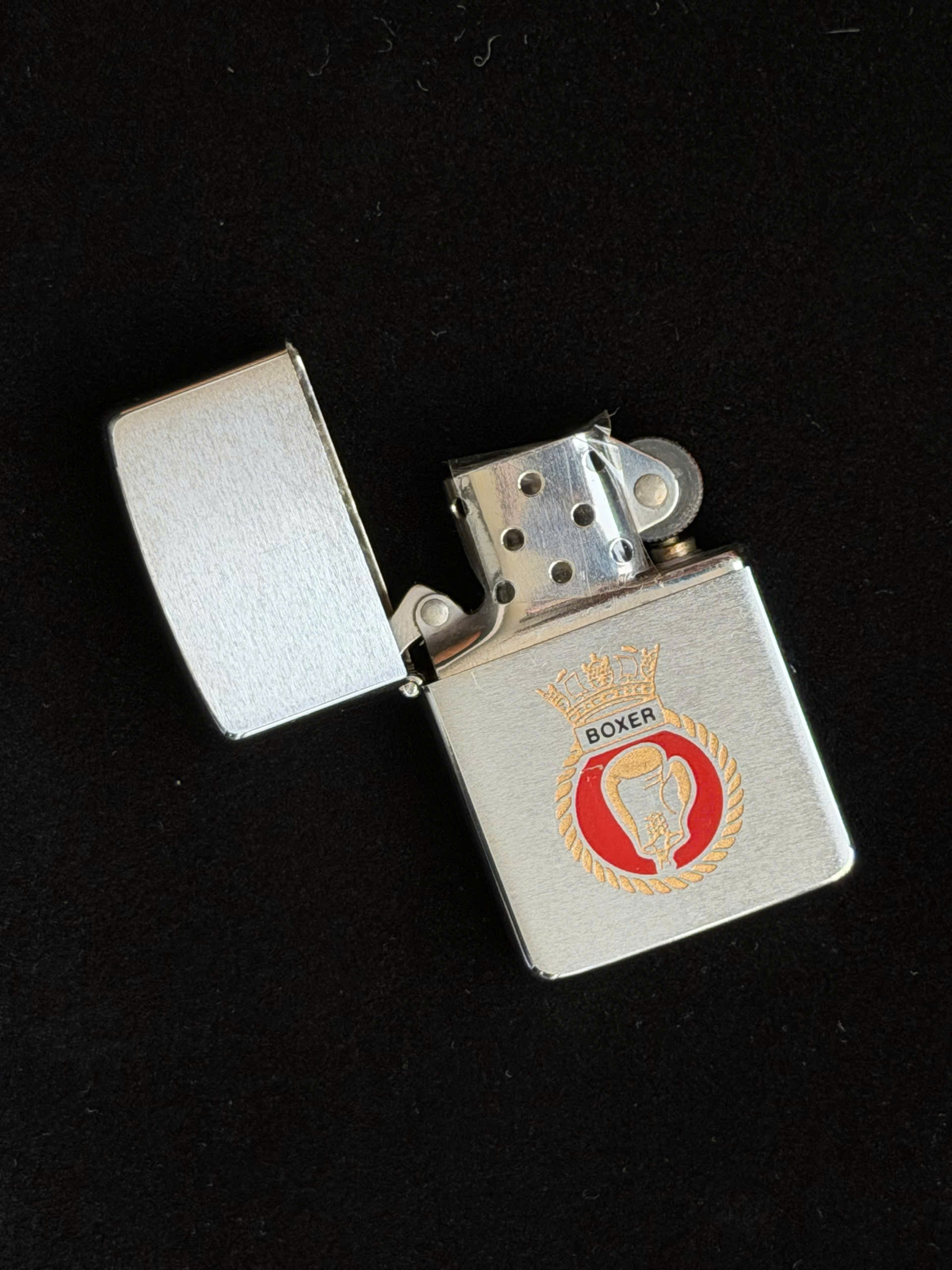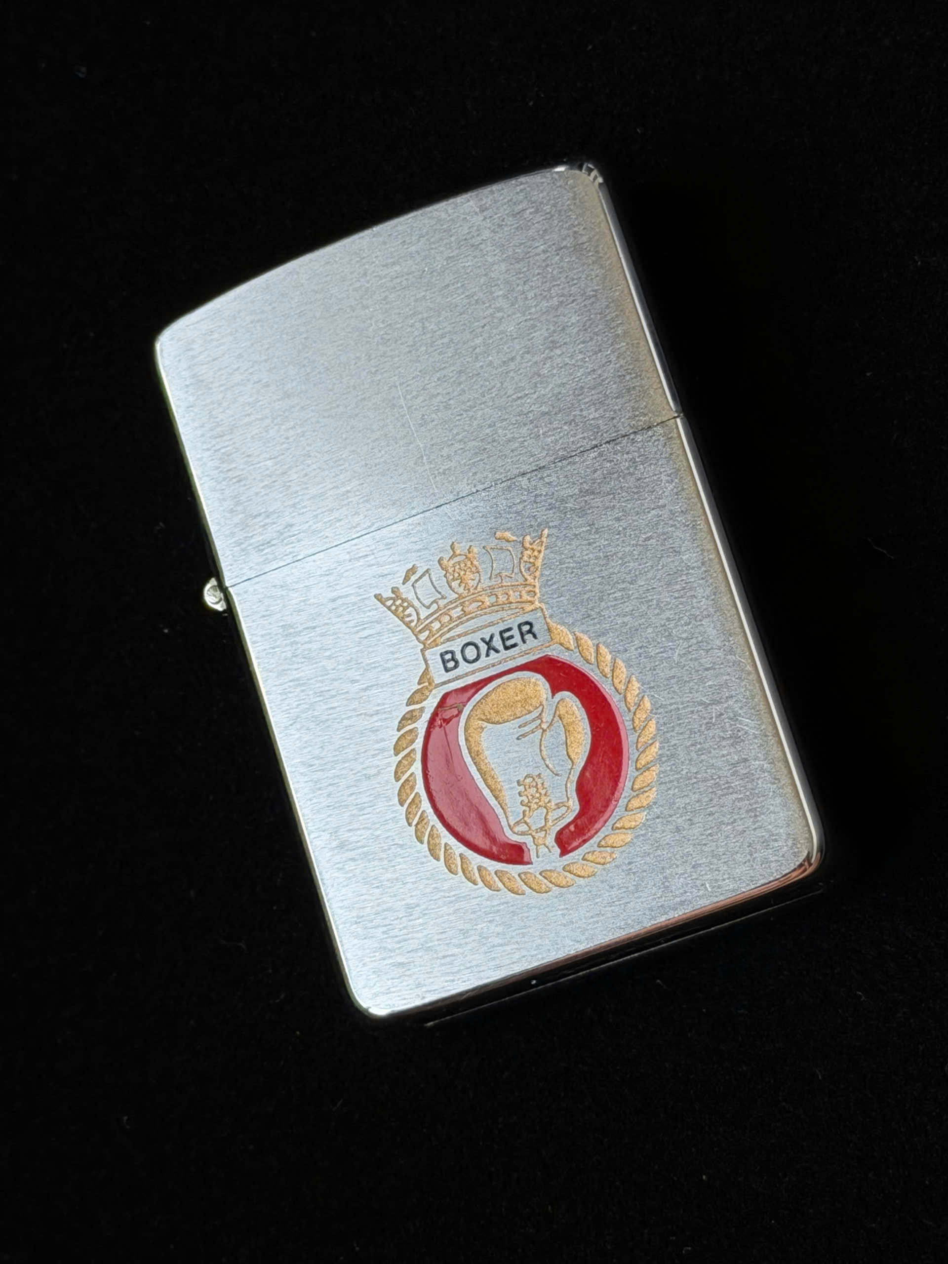 👉 Như vậy, chiếc Zippo này mang chủ đề quân sự – hải quân, gắn với Royal Navy HMS Boxer, không phải là dòng boxing thể thao. Nó vừa có giá trị sưu tầm lịch sử, vừa tượng trưng cho ý chí chiến đấu kiên cường.