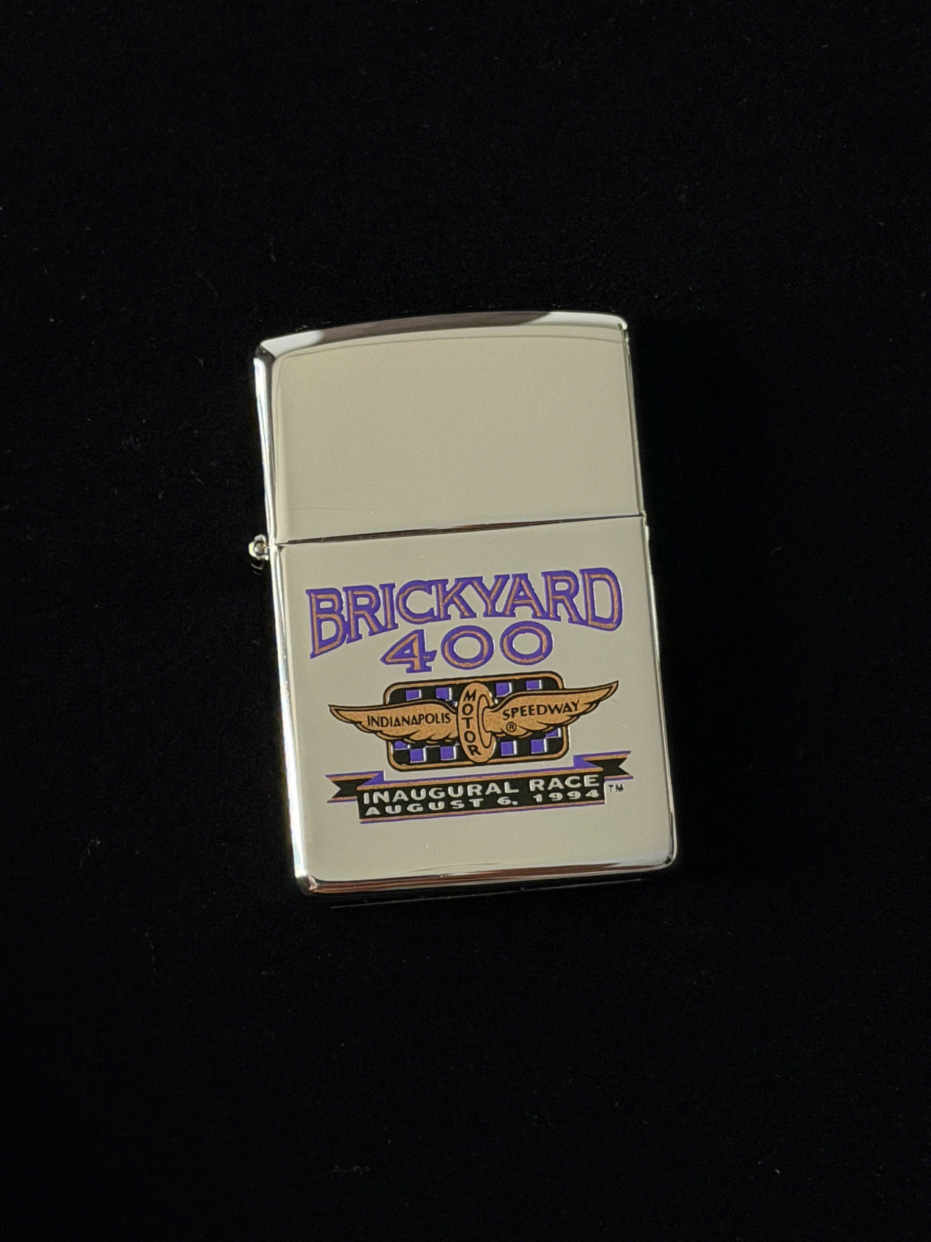 Chiếc Zippo này có thiết kế sáng bóng với mặt trước in hình logo Brickyard 400 – Indianapolis Motor Speedway, kèm theo dòng chữ ghi dấu “Inaugural Race – August 6, 1994”. Đây là mẫu kỷ niệm đặc biệt, mang đậm dấu ấn của sự kiện đua xe lịch sử tại Indianapolis.