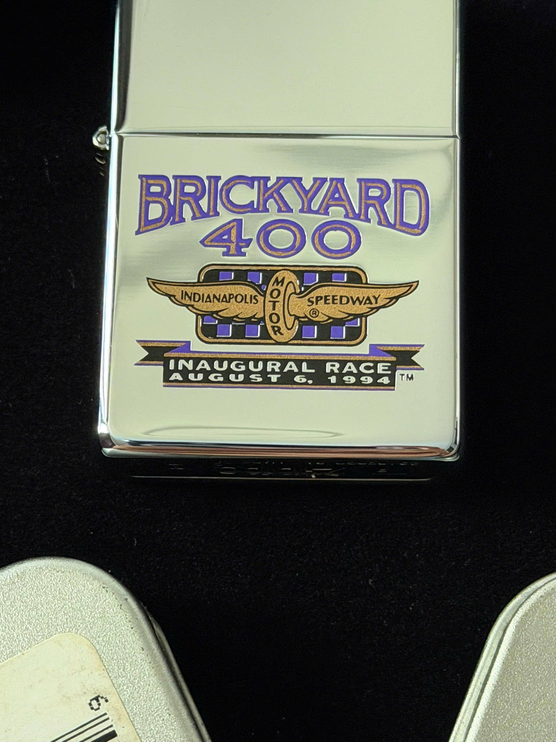 Mẫu Zippo kỷ niệm giải đua Brickyard 400 đầu tiên tại Indianapolis Motor Speedway, diễn ra ngày 6 tháng 8 năm 1994. Với thiết kế mang đậm dấu ấn lịch sử và logo đặc trưng của sự kiện, đây là món đồ sưu tầm quý giá dành cho fan NASCAR và người yêu thích những khoảnh khắc vàng của môn thể thao tốc độ.