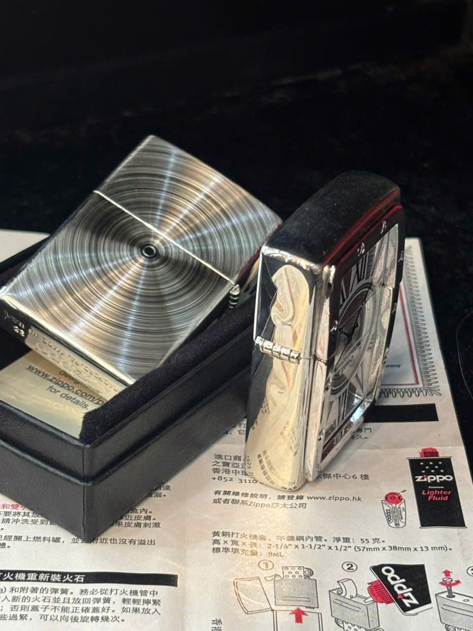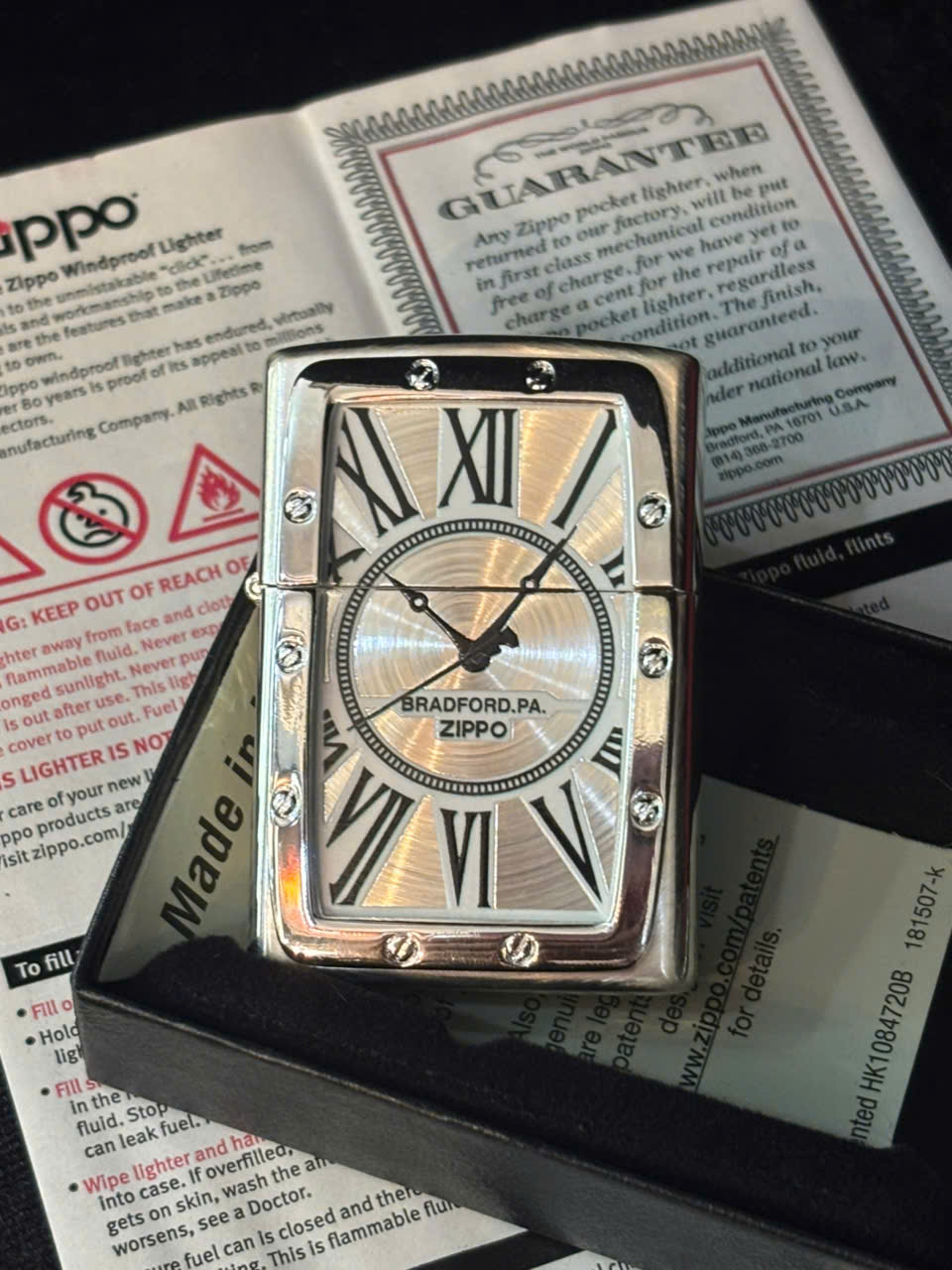 Đây là một mẫu mang phong cách Clock/Watch Theme (chủ đề đồng hồ), khá hiếm và được nhiều người sưu tầm vì thiết kế lạ mắt. Zippo là một loại bật lửa kim loại có thể tái sử dụng, được sản xuất bởi Công ty Zippo Manufacturing ở Bradford, Pennsylvania, Hoa Kỳ.